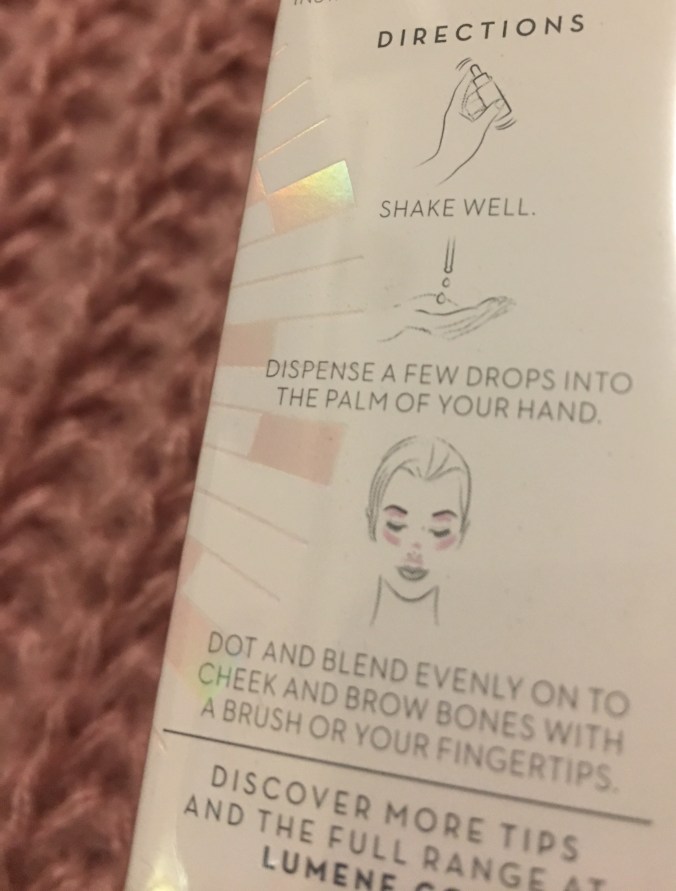Karkeasti ottaen ainetta siis otetaan pari pisaraa ja taputellaan poskipäihin ja kulmaluulle ja saadaan aikaan ihana valon hehku kasvoille! Kuulosti, sanoisinko hiukan epäuskottavalta, mutta kokeiltuani tätä ihmepurkkia parin päivän ajan olinkin yllätyksekseni aivan myyty!