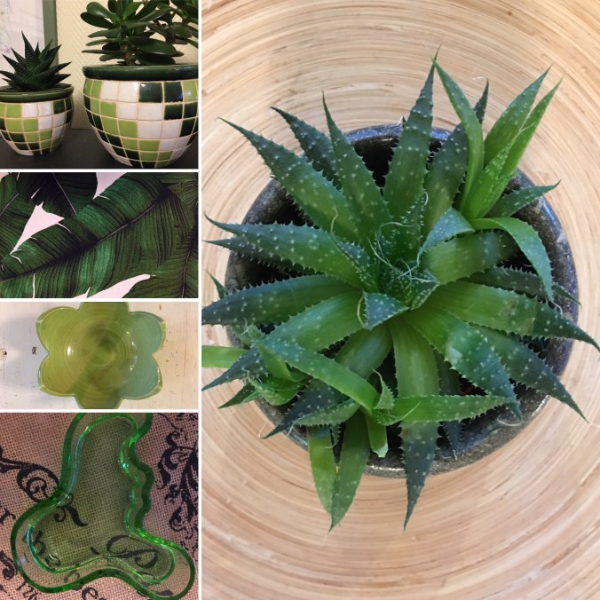 Aloekasvit näyttävät pärjäävän vähällä huomiolla, samoin rahapuu. Jatkan siis sinnikkäästi ”vihersisustamista”. Onneksi on muutakin vihreää kuin kukat!