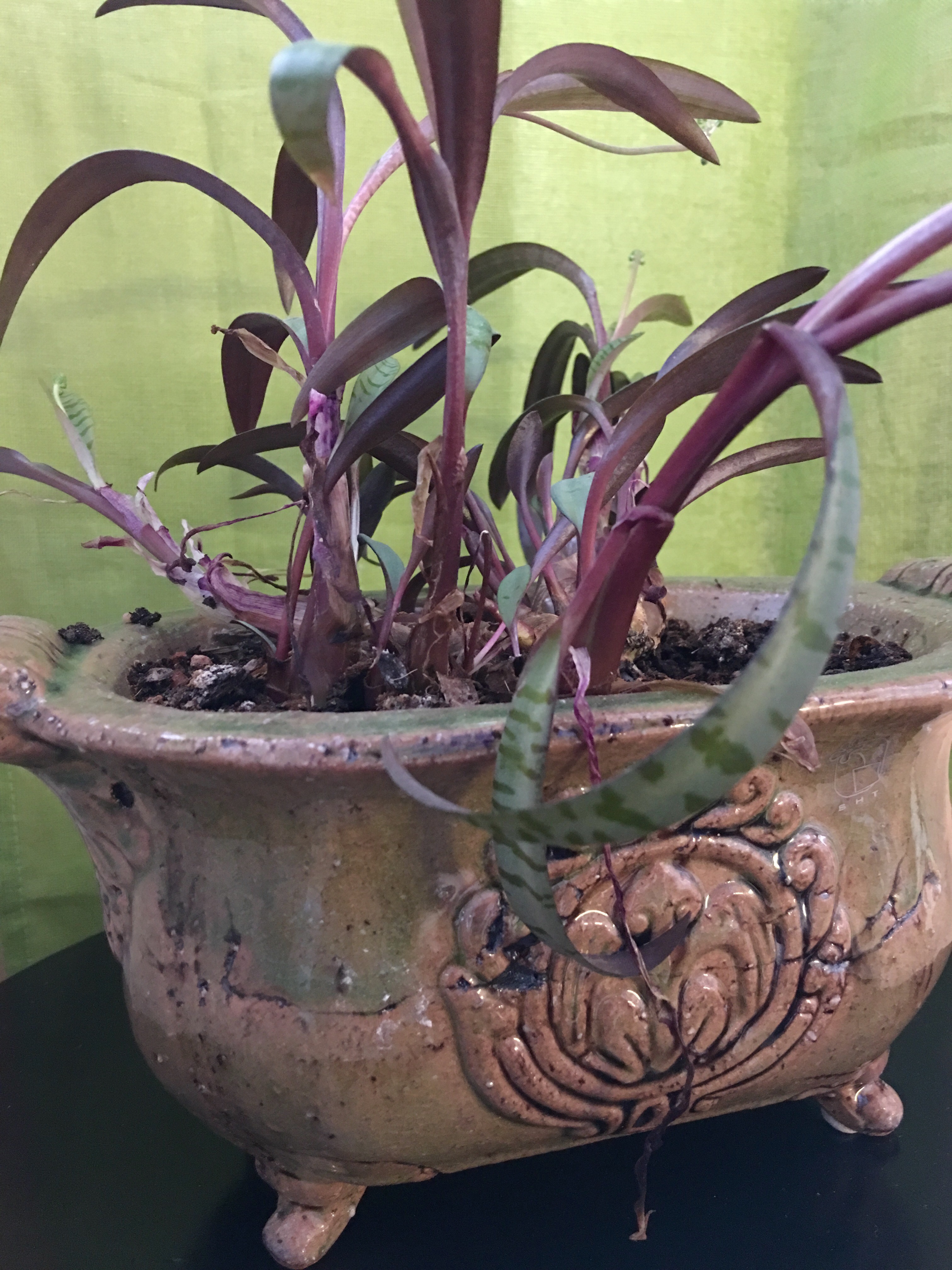 Tänä keväänä ostin olohuoneeseen viherkasveja ja päätin unohtaa taimien kanssa pelaamisen. Nyt on kuukausi mennyt kasvihankinnasta ja tuloksia viherpeukalon kosketuksestani alkaa näkyä; yksi kasviparka hukkui ja toinen kuoli muuten vaan.