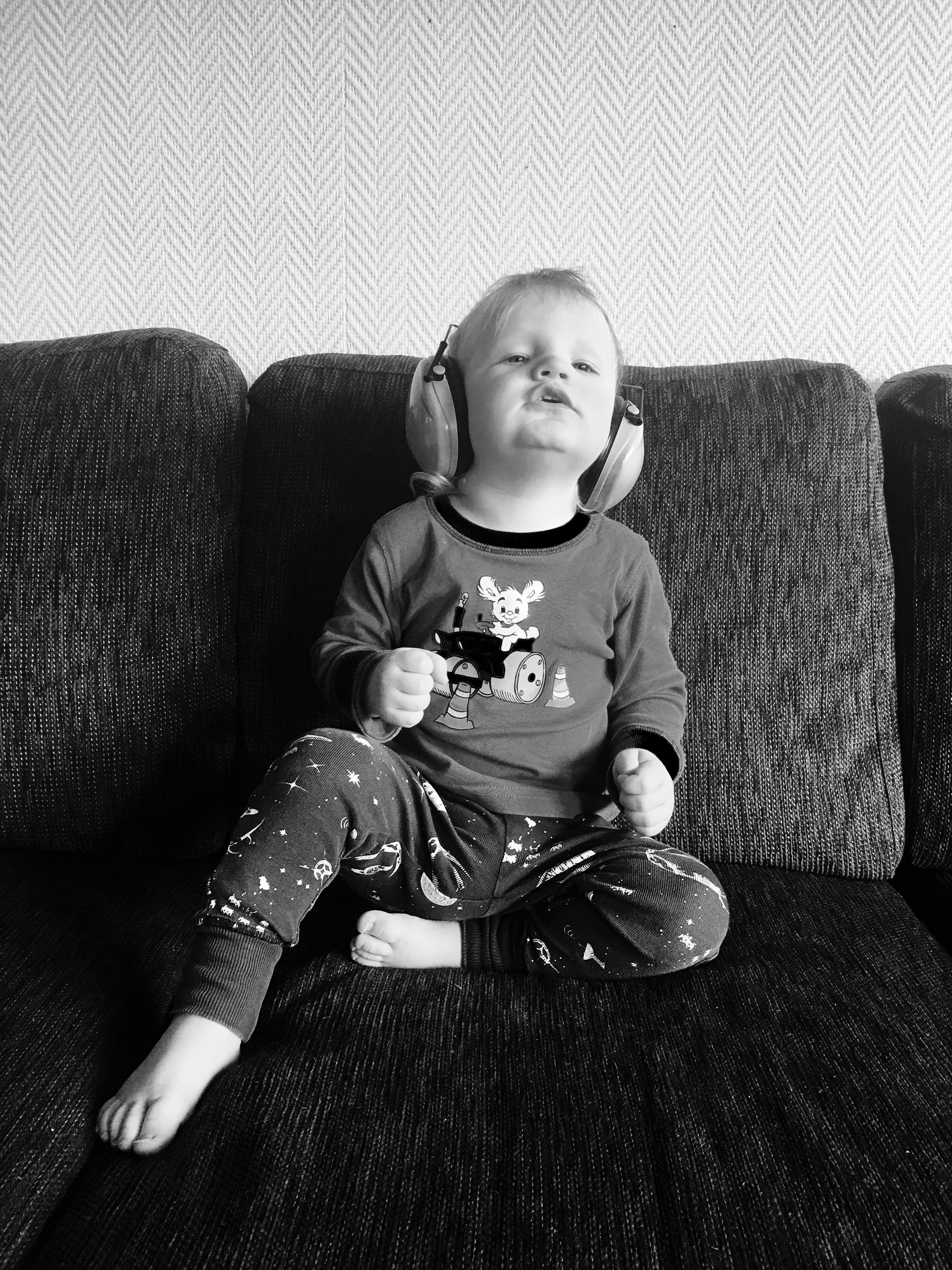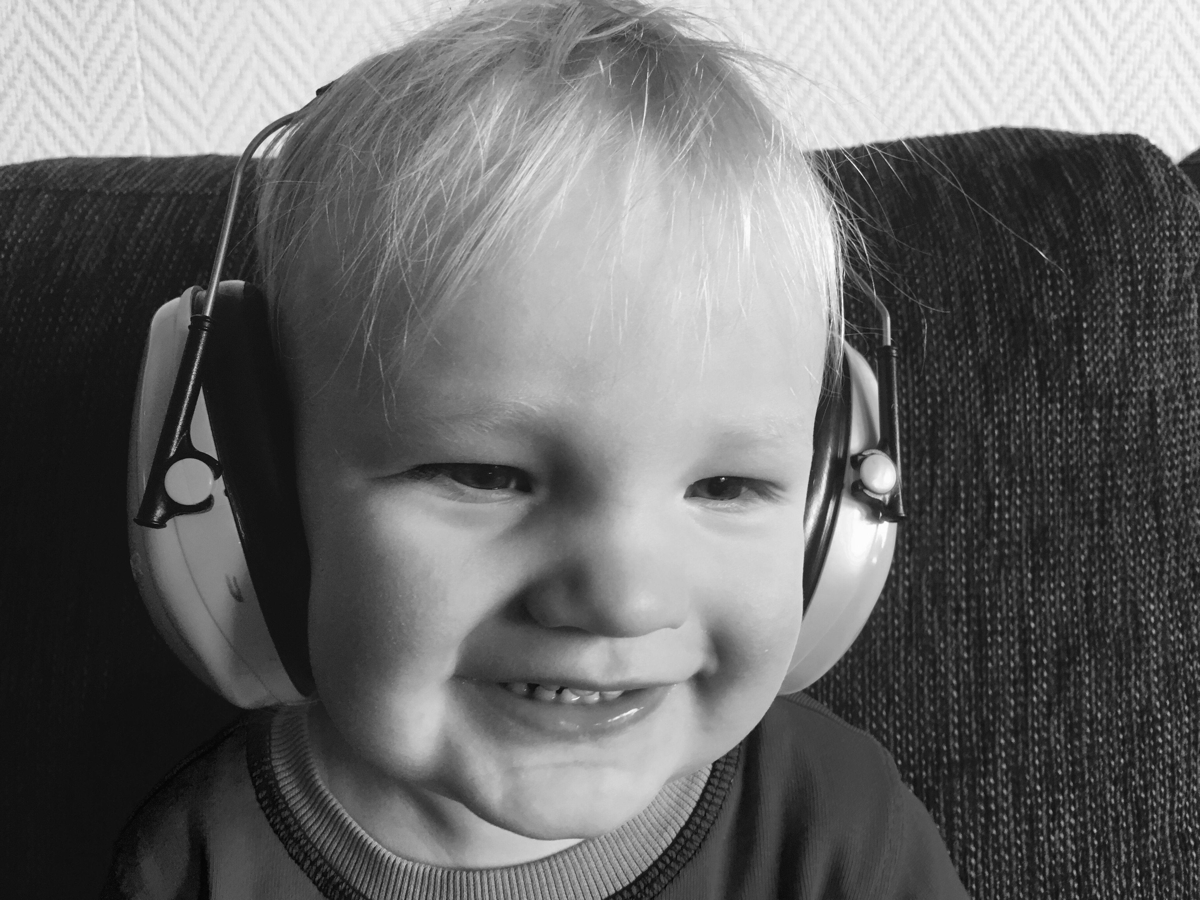 Nuorimmainen oli kaivanut romulaatikon pohjalta koripallomatsiin hankitut kuulosuojaimet ja näytti kovin onnelliselta ne päässään päästäen samalla täyslaidallisen kirkunaa suustaan!