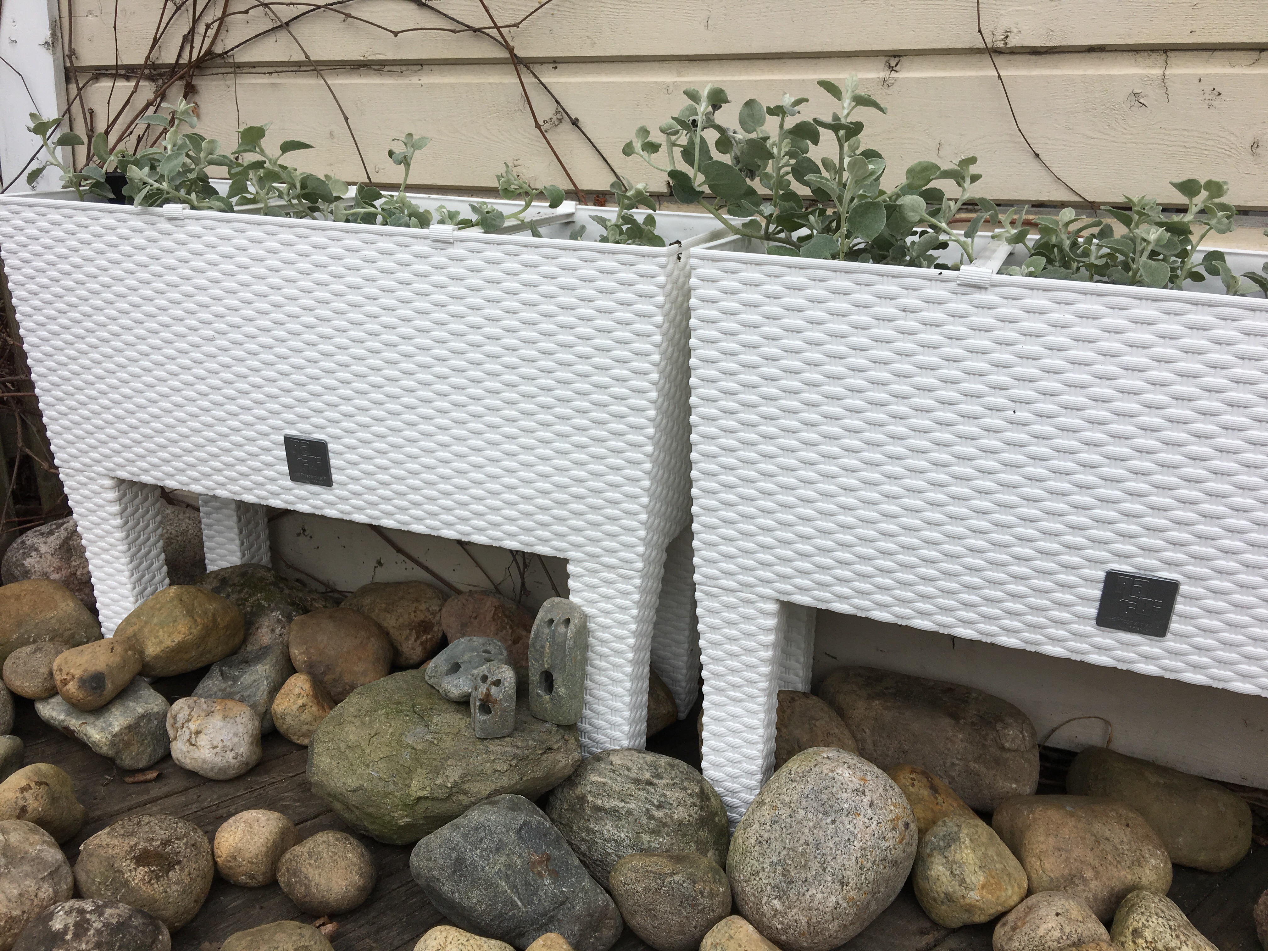 Pieni viljelijäminäni yritti myös kovasti muistutella olemassaolostaan; jos jotain pientä kasvattaisi. Tyydyin kuitenkin vain täyttämään kukkalaatikot mullalla. Pakko oli tietysti poiketa myös katsastamassa kylän kukkatarjonta. Jos sitä jo jotain voisi istuttaa!!?? Päädyin lopulta hankkimaan hopeaputoksia ja laitan sitten myöhemmin jotain värikästä niiden kaveriksi.