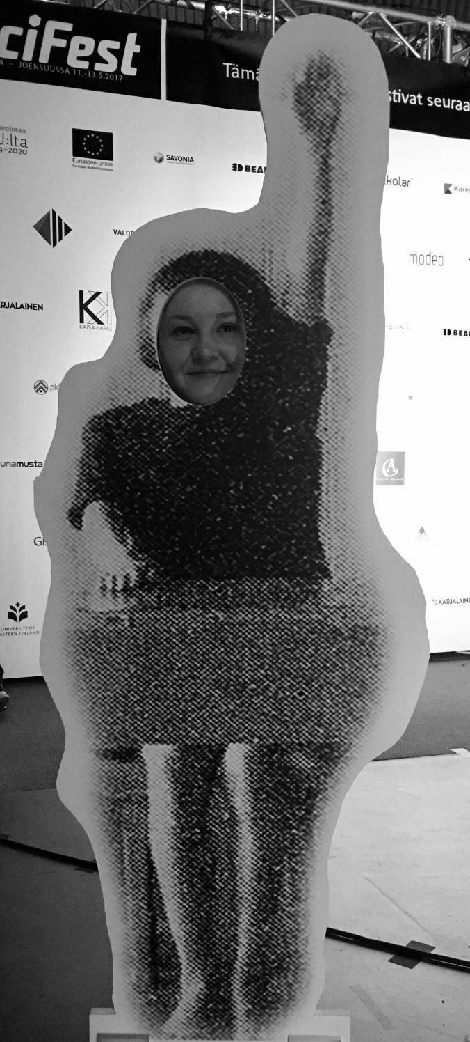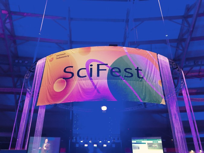 Kävin tänään työn merkeissä SciFest-tiedemessuilla Joensuussa. Näin reittini varrella lukemattoman määrän paitsi kokeita, pelejä, ääntä, valoa, robotiikkaa – niin myös hauskoja yksityiskohtia! Aika hurahti siivillä, kun katsottavaa oli Areena pullollaan.. Bongasin mm. älykorun ja sain tietää oman painoni 50km/h nopeudessa. Karmivia lukemia – pitää alkaa treenata kesäkuntoon! Tonnikeiju!