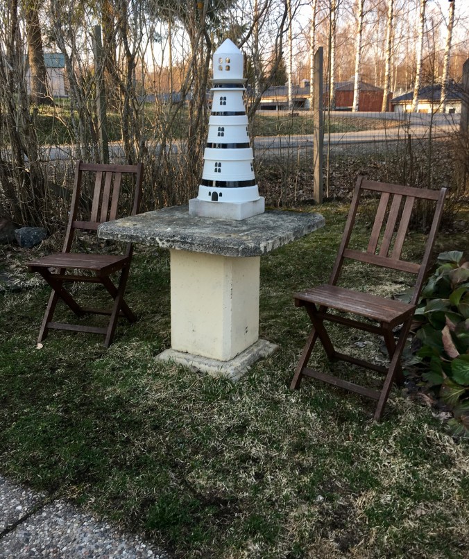 Aikaisemmassa postauksessa tekemäni majakka löysi myös paikkansa pihamaalta: