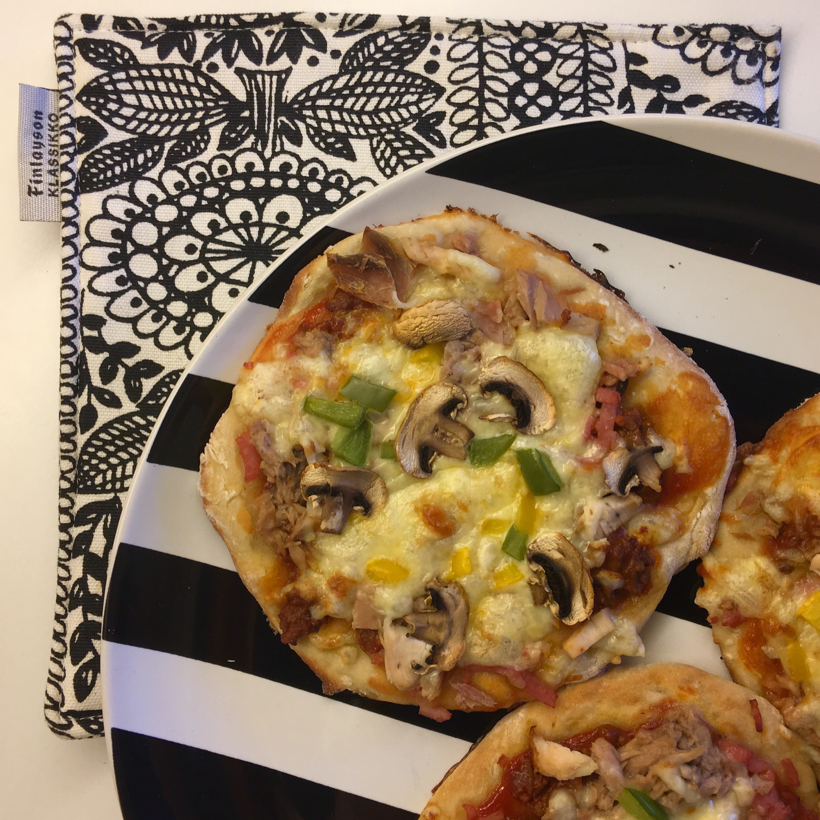 Makean vastapainona tietysti suolaista; ihana mässäilykierre! Ja mikäpä pelastaisi sunnuntai-illan paremmin kuin jämäpizza.. Pikkupizzoja kaikenlaisilla jääkaapista löytyvillä tähteillä. Lohtua loman kaipuuseen! Enää kolme viikkoa kesäloman alkuun.. ja toivon mukaan päästään taas seikkailun makuun!