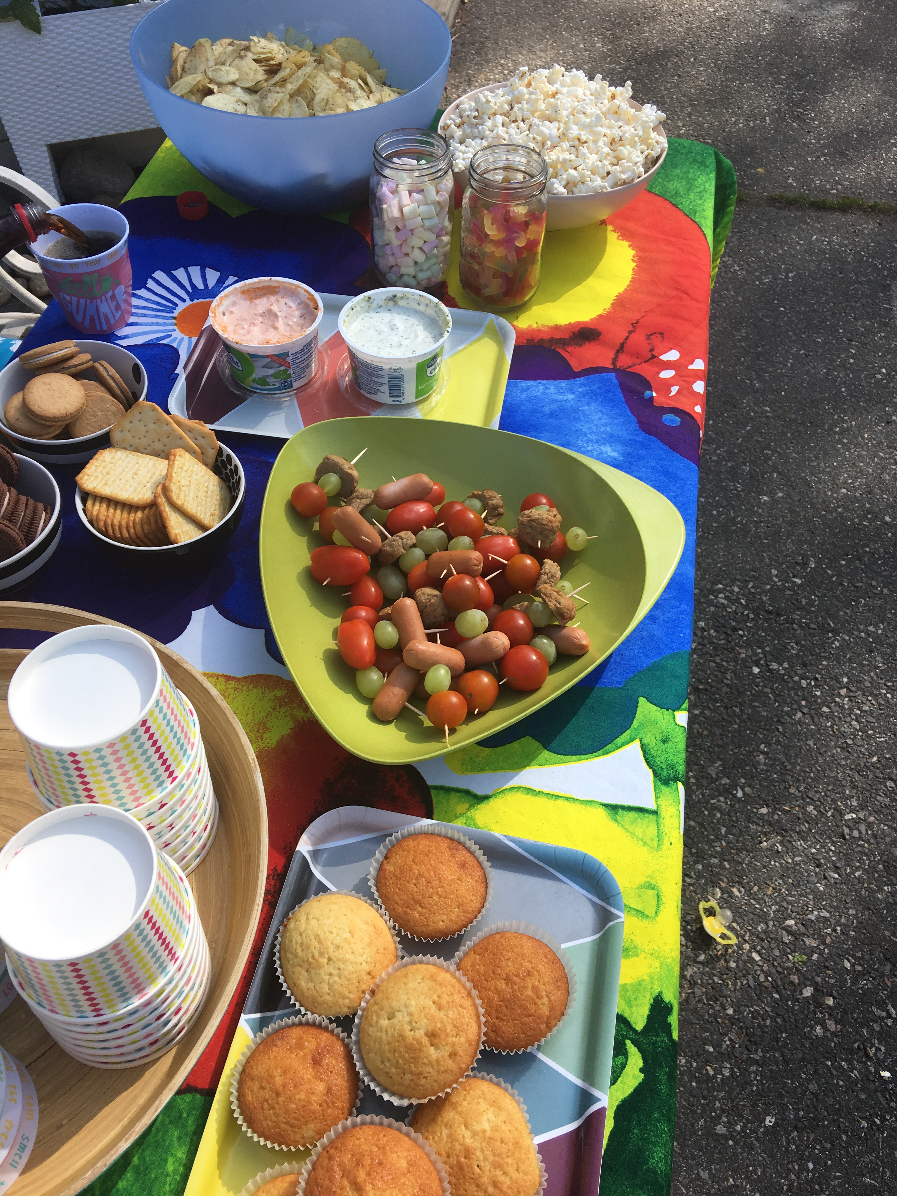 Ja mitä sitten tapahtuikaan? Meillä oli tosi kiva ja hauska viikonloppu! Pojat auttoivat tarjoiluiden väsäämisessä, herkuttelimme ulkona ja näimme ystäviä ja sukulaisia! Puuhailimme puutarhassa, loikoilimme laiturilla, kipaisimme kirpparilla ja valvoimme myöhään. Vastapainona toki nukuimme aamulla ennätyspitkään.