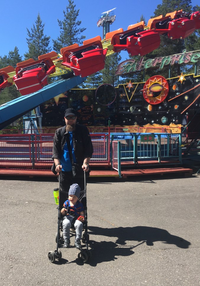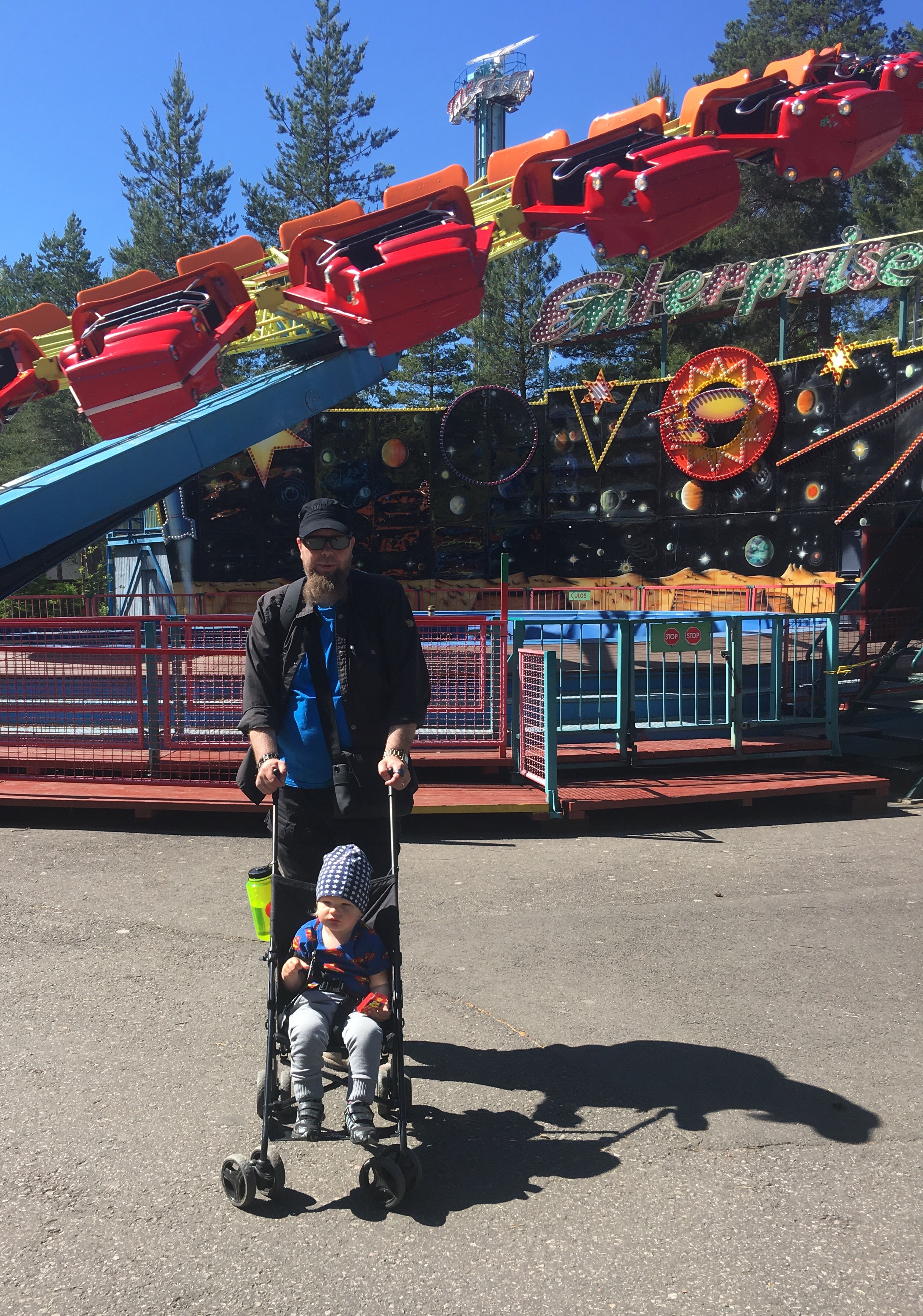Itse kävin Oulan kanssa Enterprisessä, joka pyörittää hetken myös ylösalaisin. Molemmat huudettiin pää punaisena toisillemme, että ”ei mennä mihinkään enää ikinä”! Ja sitten lopuksi onniteltiin toisiamme: ”Jes, selvittiin”! Äijätervehdys. Ja muille heikkohermoisemmille oltiin ihan muina miehinä – aika iisiä.