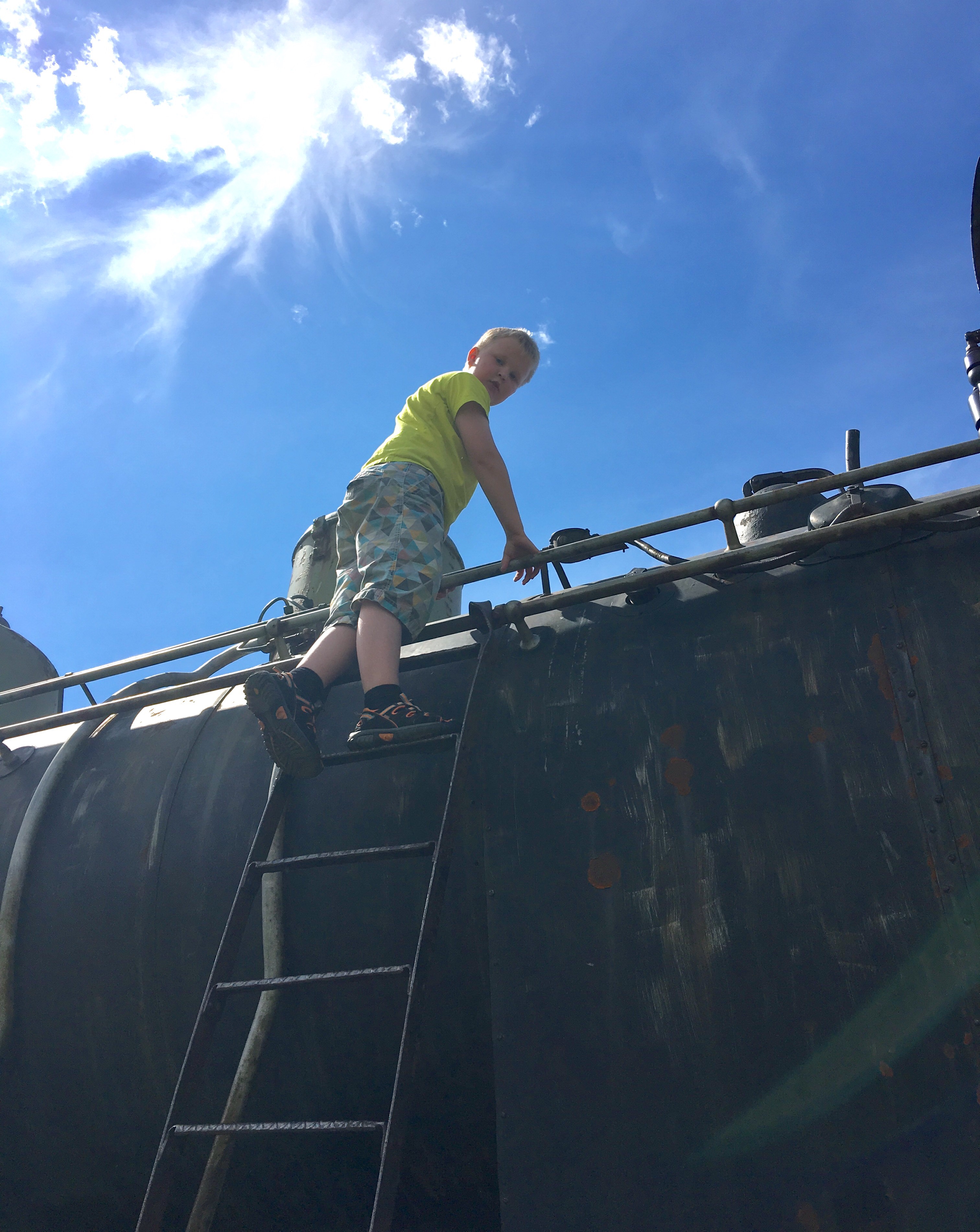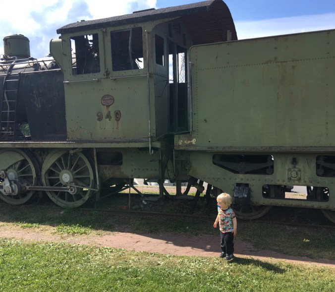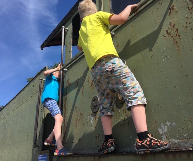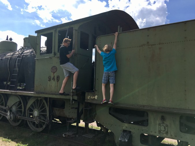 Tänään pysähdyimme vakkaripaikalla Matin ja Liisan asemalla (Lapinlahdella), jossa on poikien suosikki eli juna, jossa SAA kiipeillä 🙂