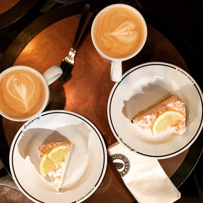 Jalat hapoilla suuntasimme syömään ja jälkkäriksi maistui hiukan lisää shoppailua (hahaa) ja lattea kera sitruunamarenkipiiraan.
