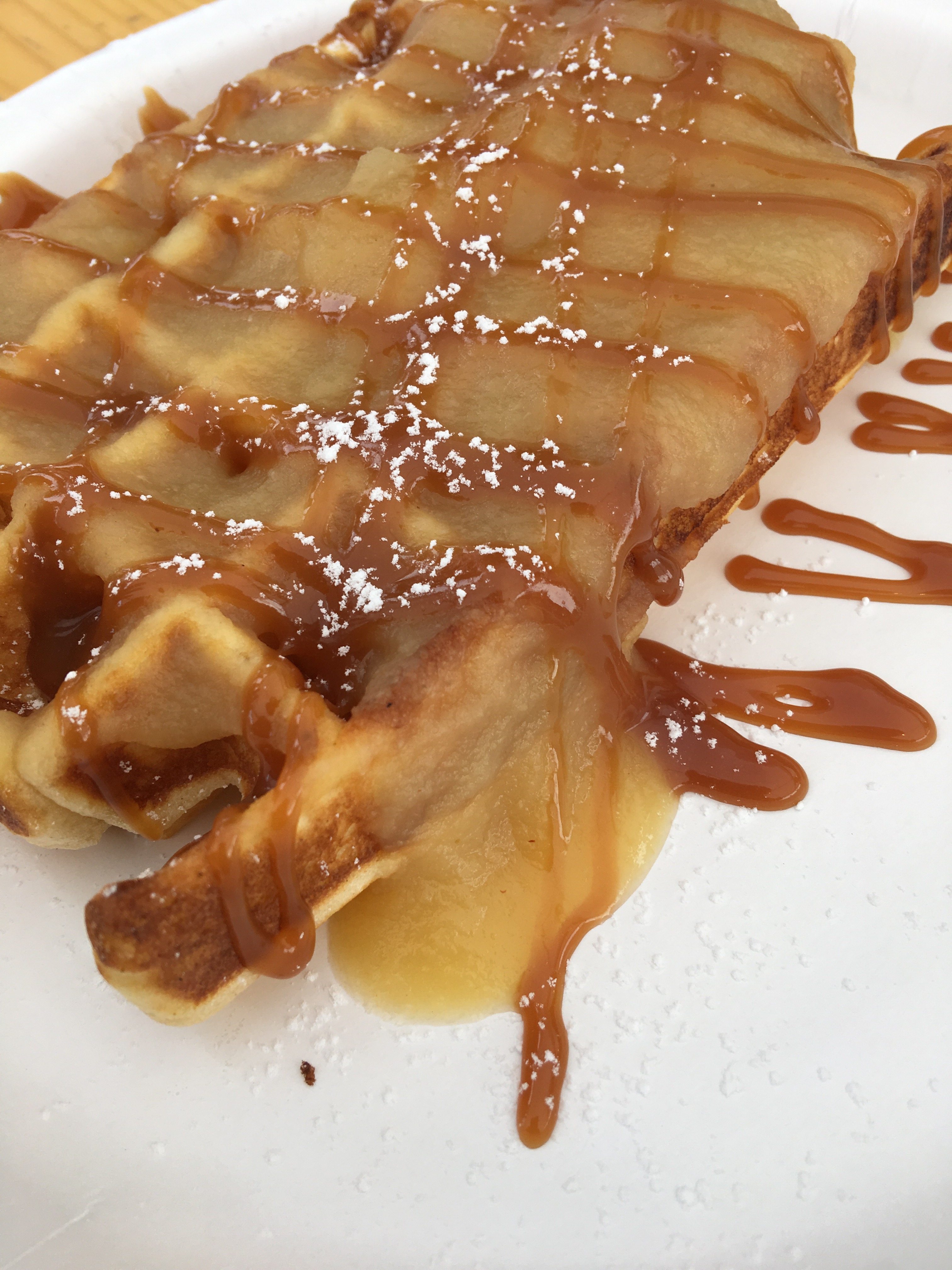 Pojat halusivat metrilakuja ja vohvelit piti perinteikkäästi käydä syömässä. Nam! Minun versiossa oli omenahilloa ja karamellikastiketta..