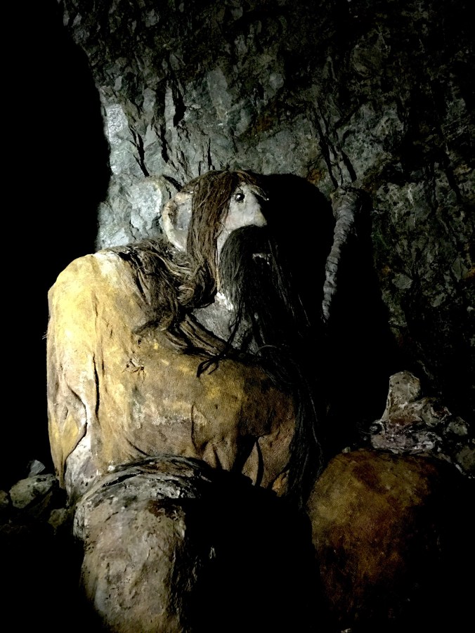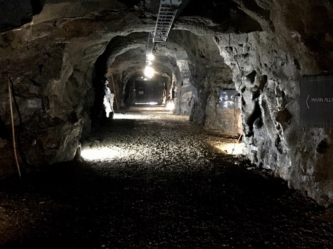Kuin olisi astunut hetkiseksi pois hektisestä arjesta, aivan erilaiseen maailmaan. Pimeässä käytävässä kuuntelin kalliosta tihkuvaa vettä ja kengänpohjassa narskuvaa soraa.. seurasin seinillä hyppiviä varjoja ja kimaltavia valojuovia. Vaikka olin matkalla maan uumenissa vain muutaman hetken, tuntui se aikamatkalta kauas historiaan. Hassu tunne!
