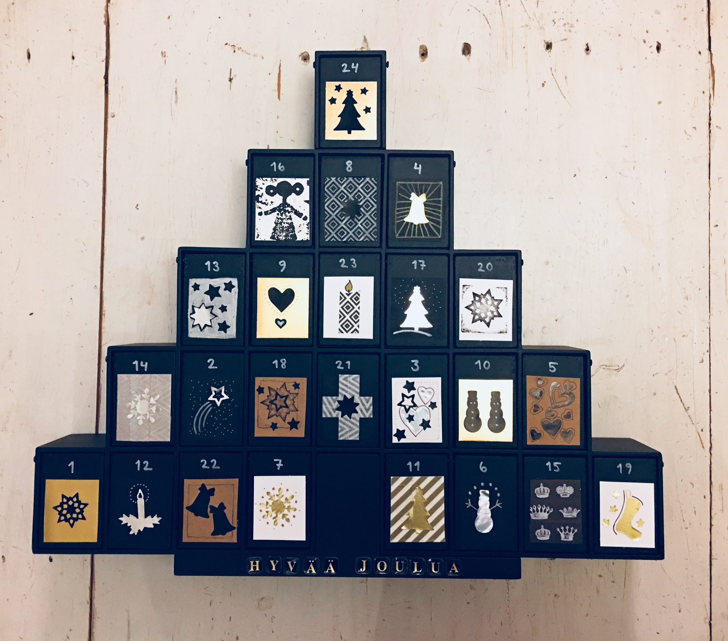 Yksi kommentti artikkeliin ”DIY: Musta luukkujoulukalenteri