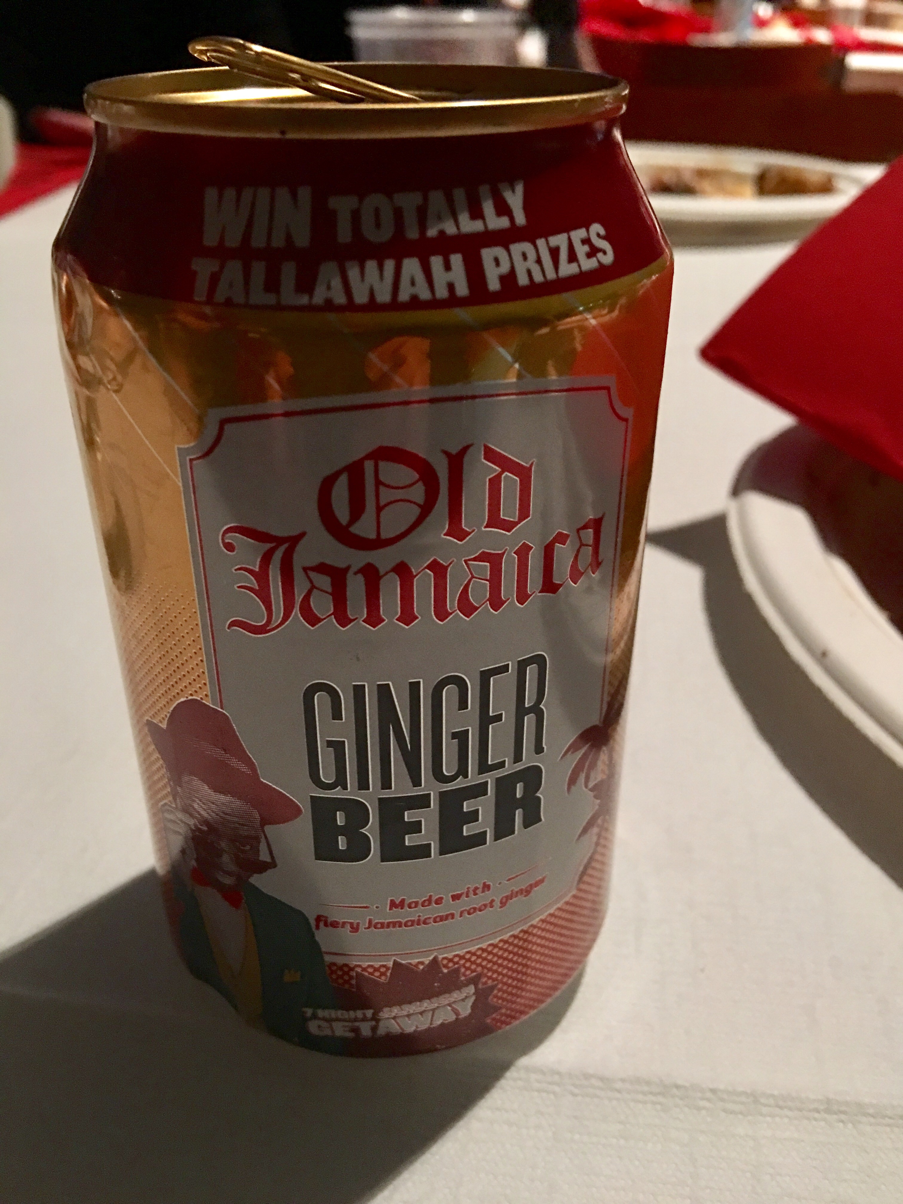 Meillä kuului iltaan ennen Ismo Alangon konserttia buffet menu ja pari drinkkilippua. Kysäisin sitten tiskillä, että onko teillä mitään muuta alkoholitonta kuin limpparia – ja sain aivan sairaan hyvän inkiväärioluen! Naamioiduin siis täydellisesti tölkkini kanssa ja hauskaa oli! Tätä pitää ostaa jouluksi, kerrassaan hurmaava maku!