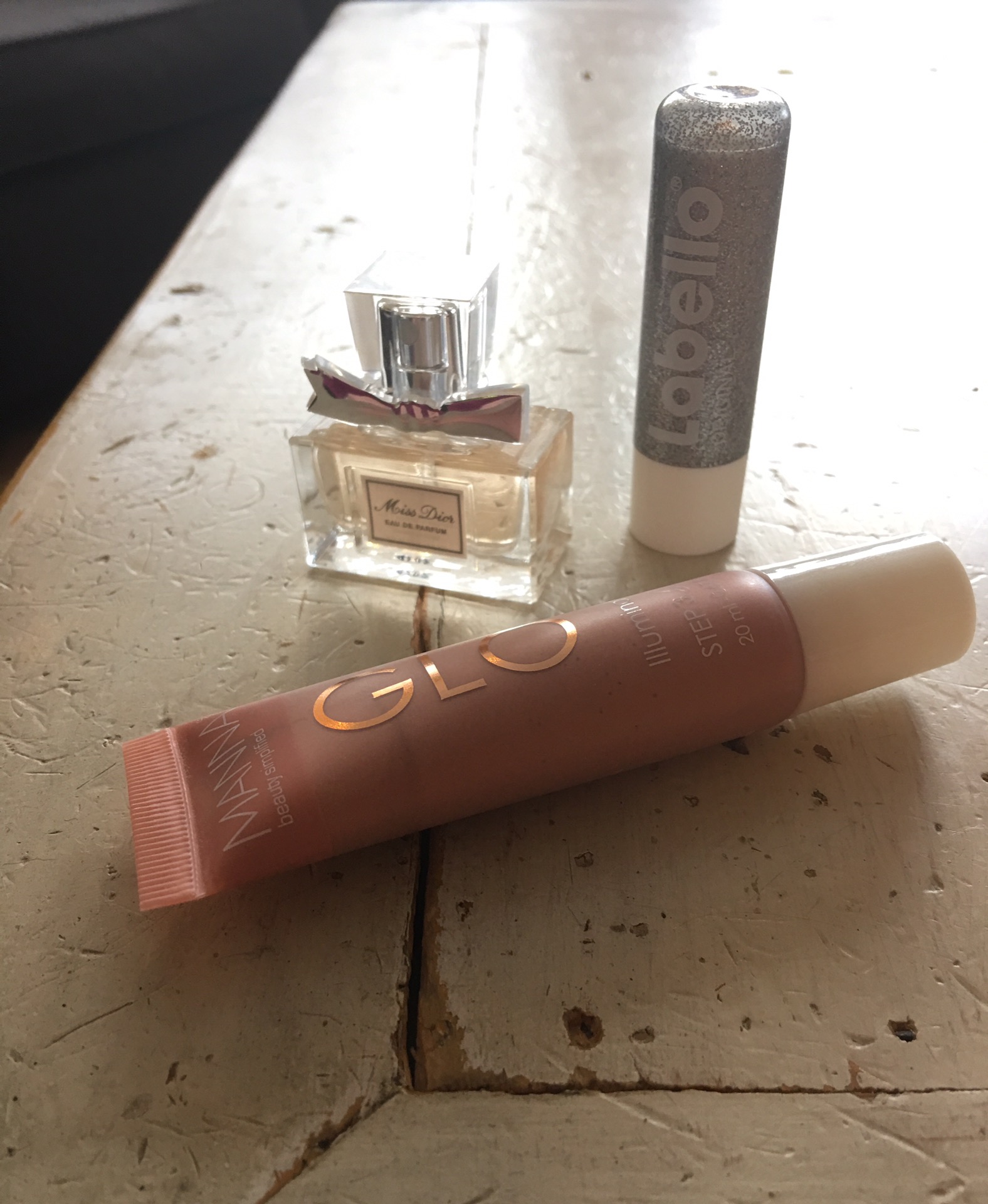 Lisäksi pari luottotuotteita iltaan eli tuoksu Miss Dior, Labellon kimallehuulirasva ja Manna Kadar Glo.