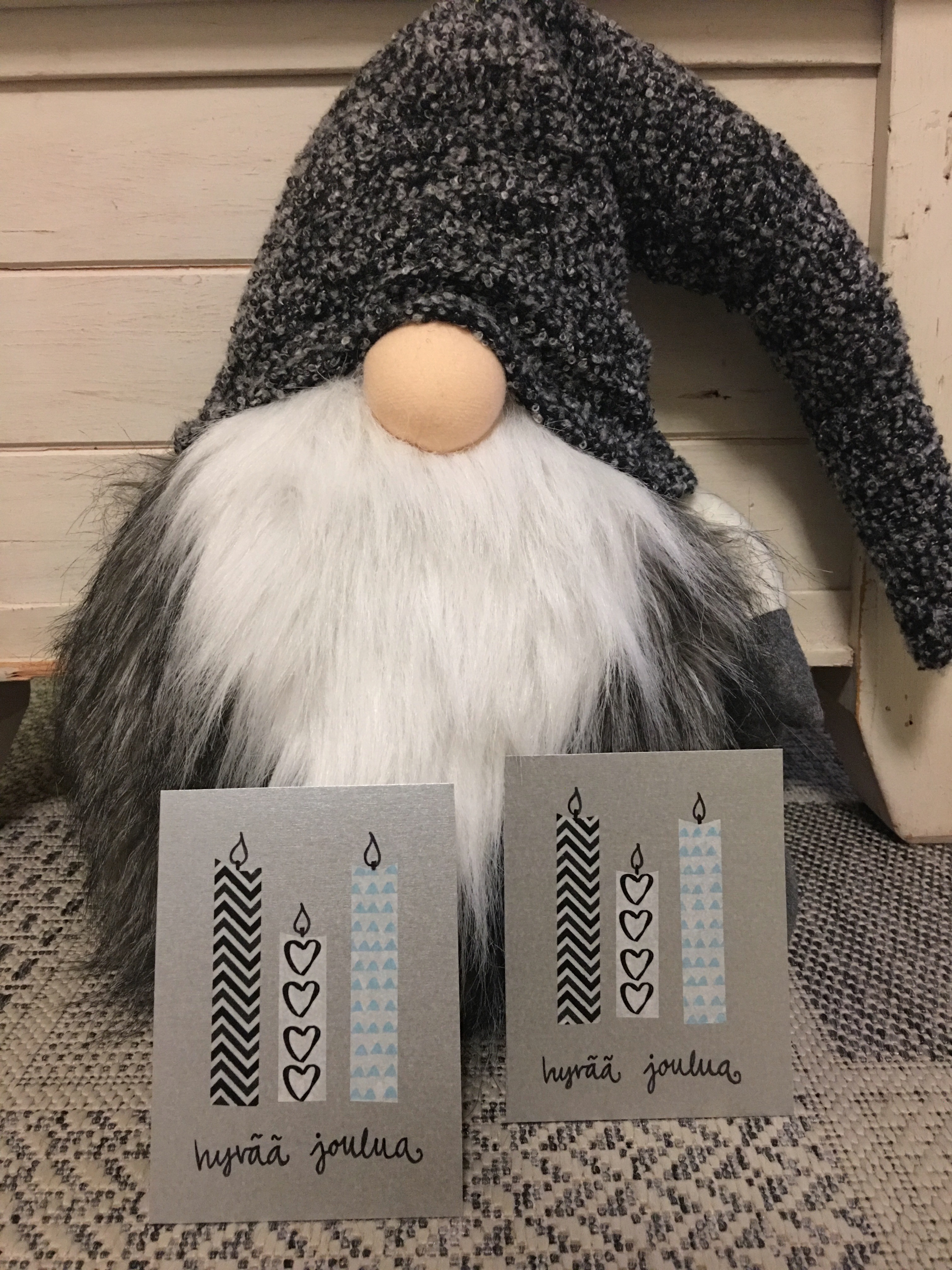Tänä vuonna ajattelin askarrella helppoja joulukortteja lasten tai koiran tonttuilukuvien sijaan. Hauskoja toki nekin ovat olleet, mutta lepuutan hermoja tänä jouluna..