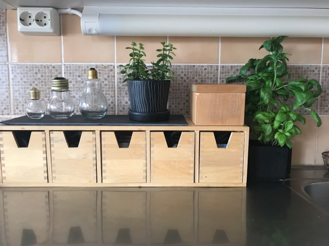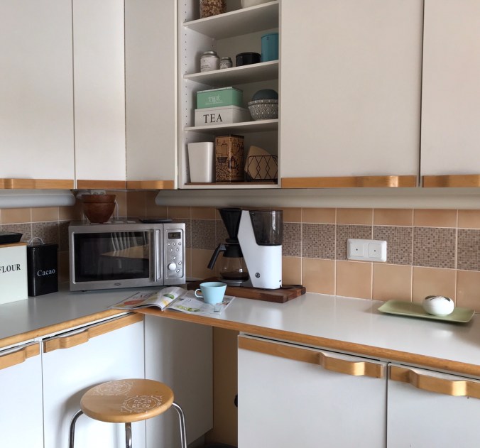 Näin pieni toimenpide ja mielestäni oikein kiva lopputulos, vaikkakin kotikutoisen näköinen. Onneksi vanha sympaattinen keittiö on salliva tuunaukselle, eriparikupeille ja monenkirjavalle sisustukselle!