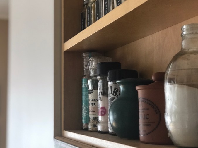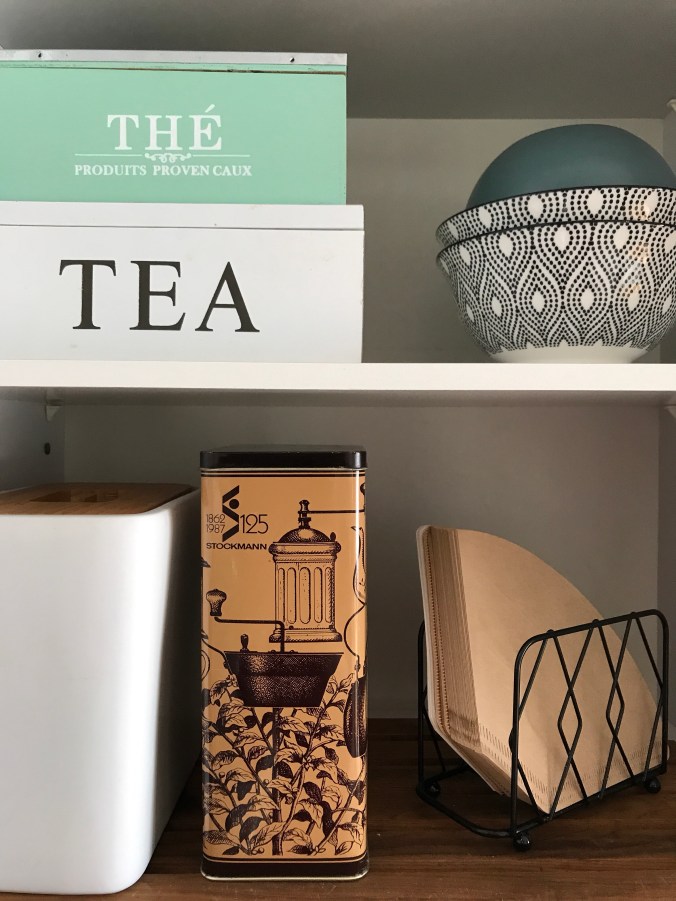 Siitä se inspiraatio sitten lähti kokeilla yhtä avohyllyä niinkin helpolla toimenpiteellä kuin kaapinoven poistamisella. Hihii – nerokasta? Toki kaappi oli täynnä kaikkea sälää, joten muutama hetki meni tyhjentämiseen..