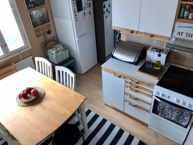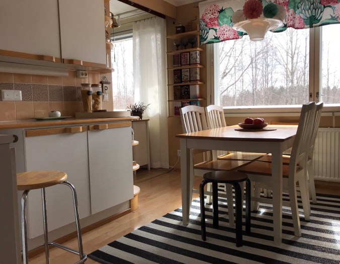 Oikeastaan tarkemmin ajatellen, auringon siivilöityessä ikkunasta keittiönpöydälle, niin voin sanoa, että jospa se keittiöremppa vielä voi hetken odottaa! Tämähän on ihan täydellinen meille!