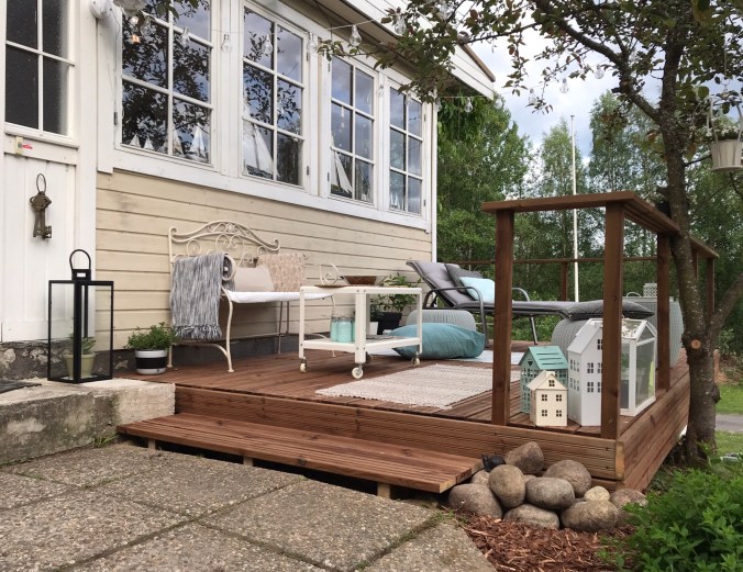Eilen vietimme terassin avajaisia ja niin siinä sitten kävi, että lopputulos on mielestäni enemmän kuin ikinä osasin odottaa! Olin toki kuvitteellisesti sisustanut terassin kevään aikana jo sata kertaa, mutta aina lopputulos elää ja muokkautuu projektin edetessä.