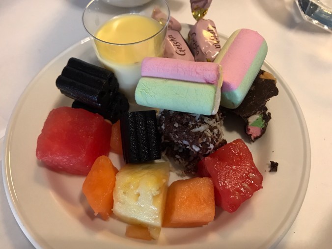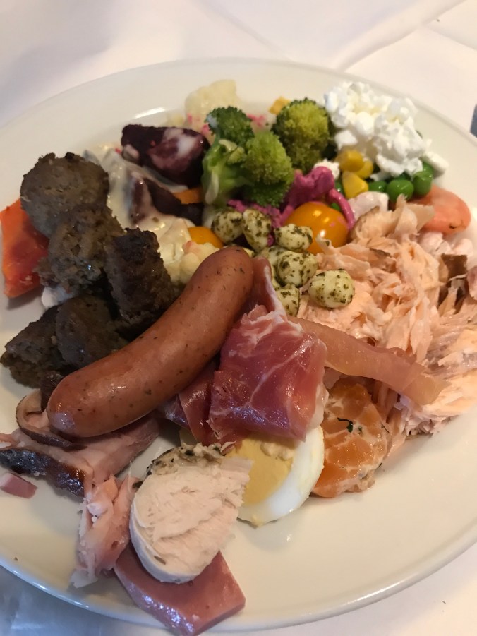 Laivamatka kesti nelisen tuntia. Pienessä laivassa tekeminen on kortilla, mutta kävimme syömässä saaristobuffetin ja pitää myöntää, että tällaisten notkuvien pöytien äärellä iskee aina ahneus. Miksi pitää syödä kaikkea ja niin paljon vielä jälkkäriäkin, ettei silmät liiku???