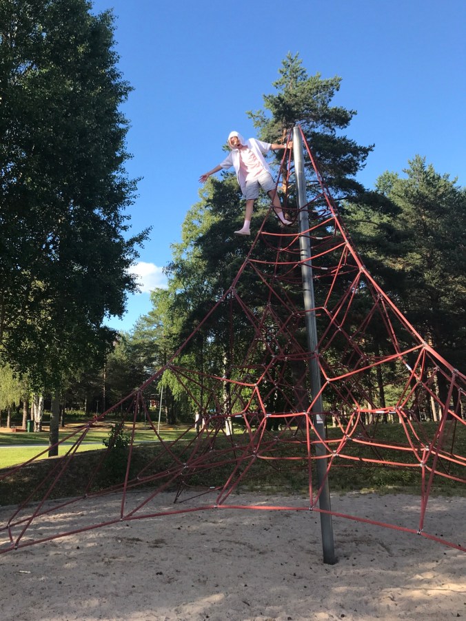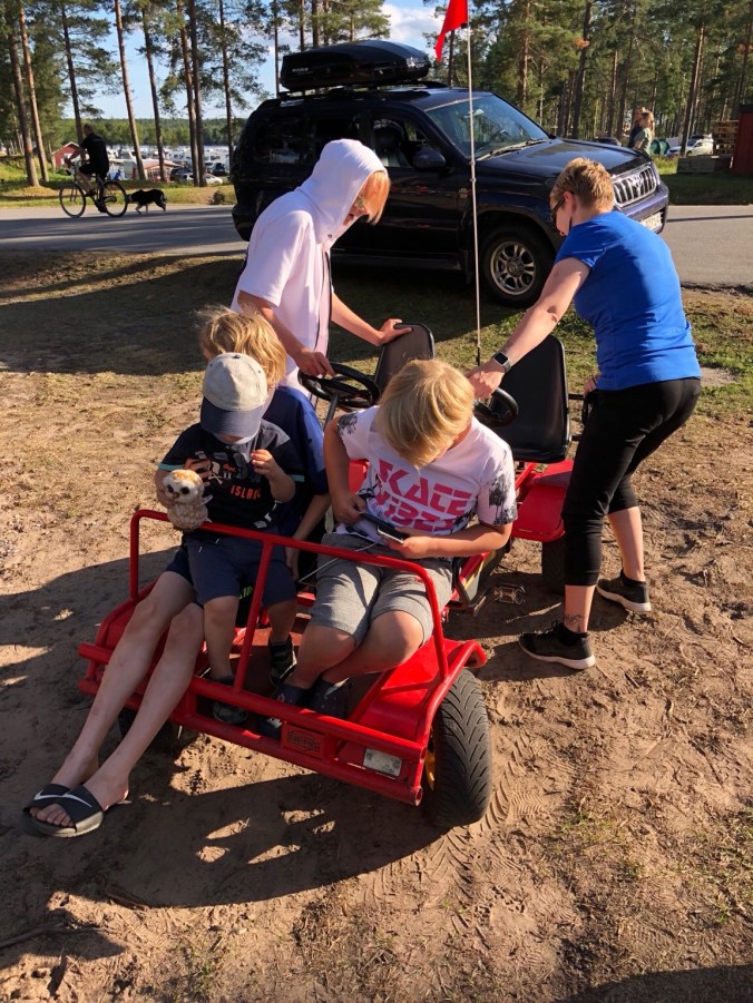 Potilas oli jo iltapäivästä valmis leikkikentälle ja illalla pojat polkivat porukalla täyttä päätä polkuautoilla! Me muut kipaisimme vielä uimaankin, mutta Ewo päätti käydä ajoissa nukkumaan, niin rankka pikatauti oli kuitenkin kyseessä. Itse jos olisin sairastunut, olisin varmaan ollut kanttuvei vaikka kuinka kauan!