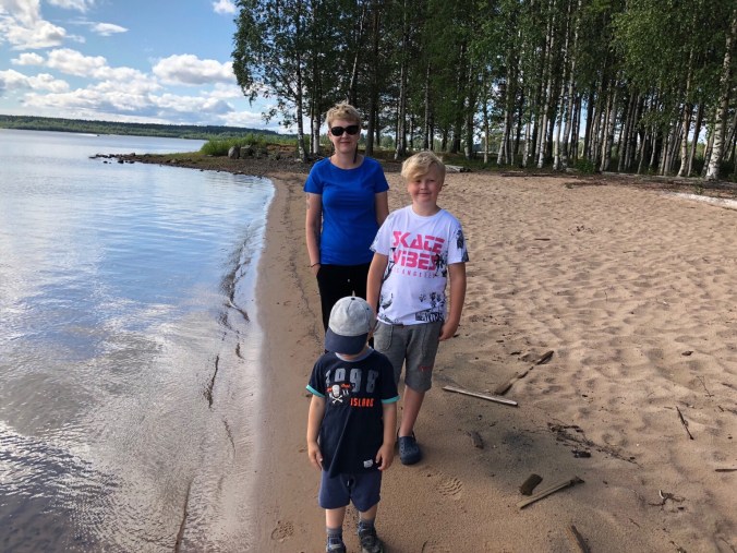 Museoreissulle Jokkmokkiin saimme kuitenkin heittää hyvästit ja pidimme huilipäivän mökillä. Isommat lapset nukkuivat pitkään ja me kävimme pienten kanssa metsäretkellä ja tutkimassa autioituneen laivarannan.