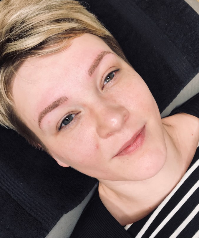 Pitkään harkittuani päätin viimein toteuttaa yhden haaveeni; ottaa olemattomiin kulmakarvoihini microblading-muotoilun eli viiltämällä tehdyt kulmakarvat. Viillot tehdään pinnallisiin ihokerroksiin käyttäen luonnollisia väriaineita.