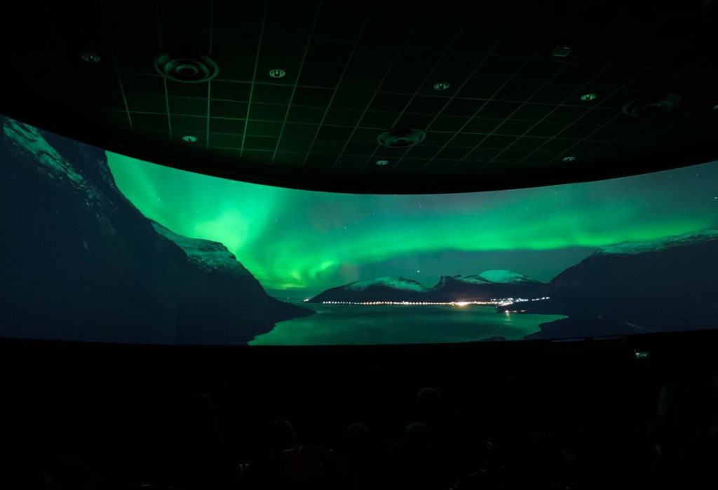 Vielä ennen kaloja kävimme katsomassa lyhyen esityksen revontulista, ja sitten nuorin pääsi kirmaamaan altaalta toiselle!