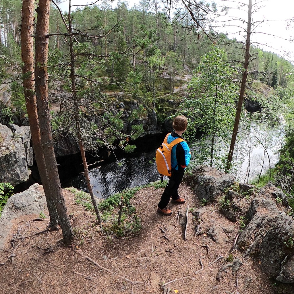 Nettisivujen mukaan polku on osin melko vaativa, mutta nelivuotiaankin kanssa sujui oikein leppoisasti. Opastettu polku kulkee kuitenkin paikoitellen läheltä rotkon reunaa, eli tarkkana saa lasten kanssa olla.