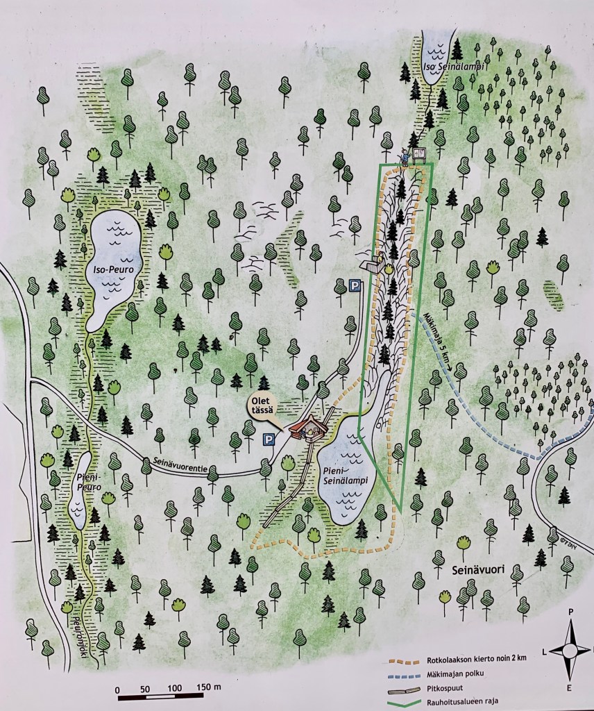 Sää näytti aamulla epävakaalta, mutta lähdettiin silti miniretkelle Seinävuoren Rotkolaaksoon Tuusniemelle. Viimeksi taidettiin käydä kohteessa yli 10 vuotta sitten, vaikka matkaakaan ei ole kotiovelta autolla kuin 40 minuuttia.
