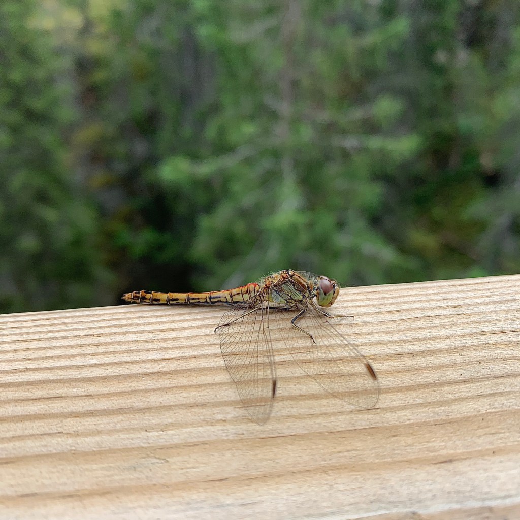 Sää olikin lopulta mitä mainioin retkeilylle ja saatiin ihmetellä luonnon kauneutta. Nähtiin sisiliskoja, hämähäkkejä, sudenkorentoja ja monenlaisia lintuja. Pikkututkijalla oli hymy herkässä!