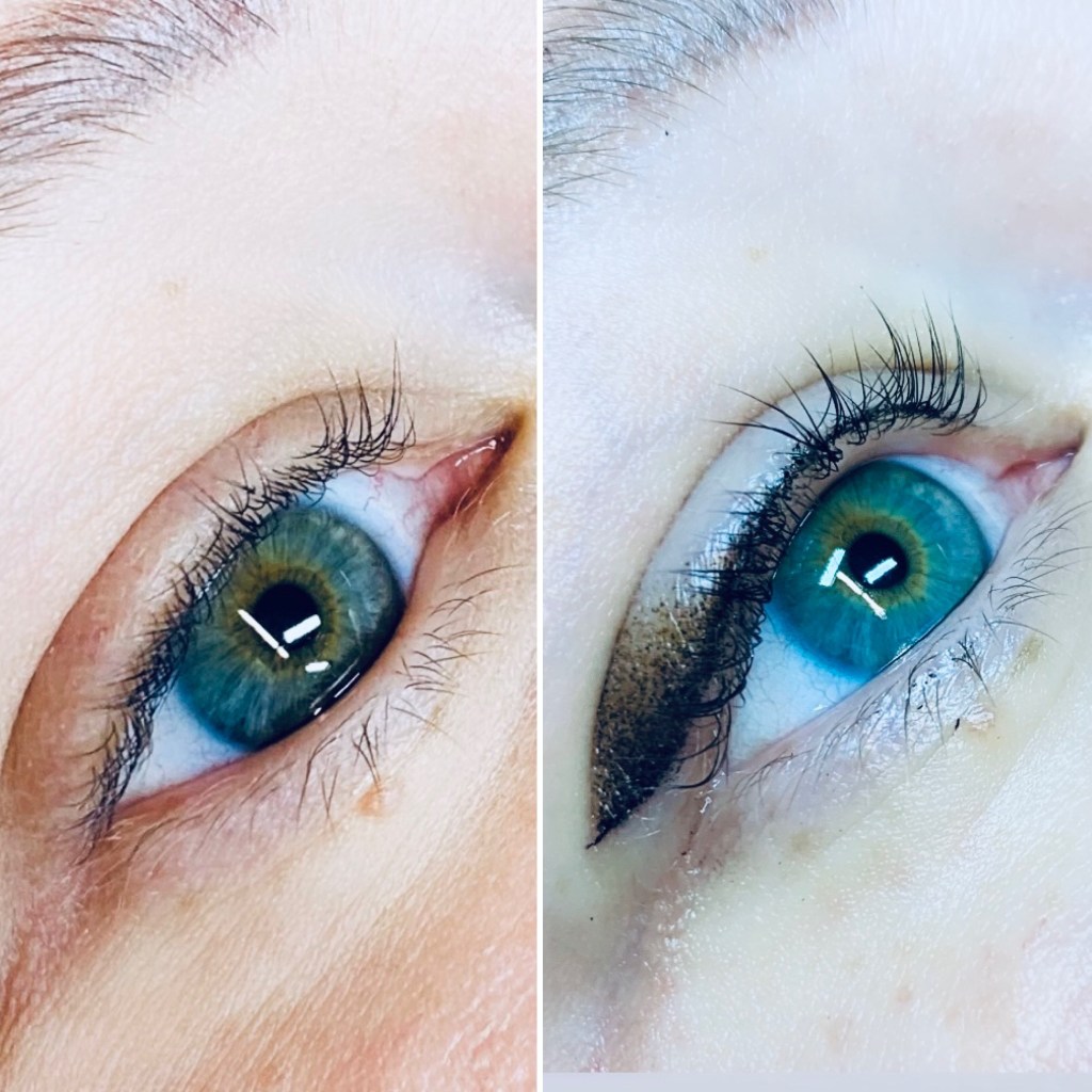 Hauska huomata, että ennen ja jälkeen -kuvissa ripset näyttävät tummemmilta, vaikka niille ei ole tehty mitään. Jenna kertoikin, että monet ovat luopuneet kestoripsistä rajauksen jälkeen, koska rajaus jo yksinkin korostaa silmiä.